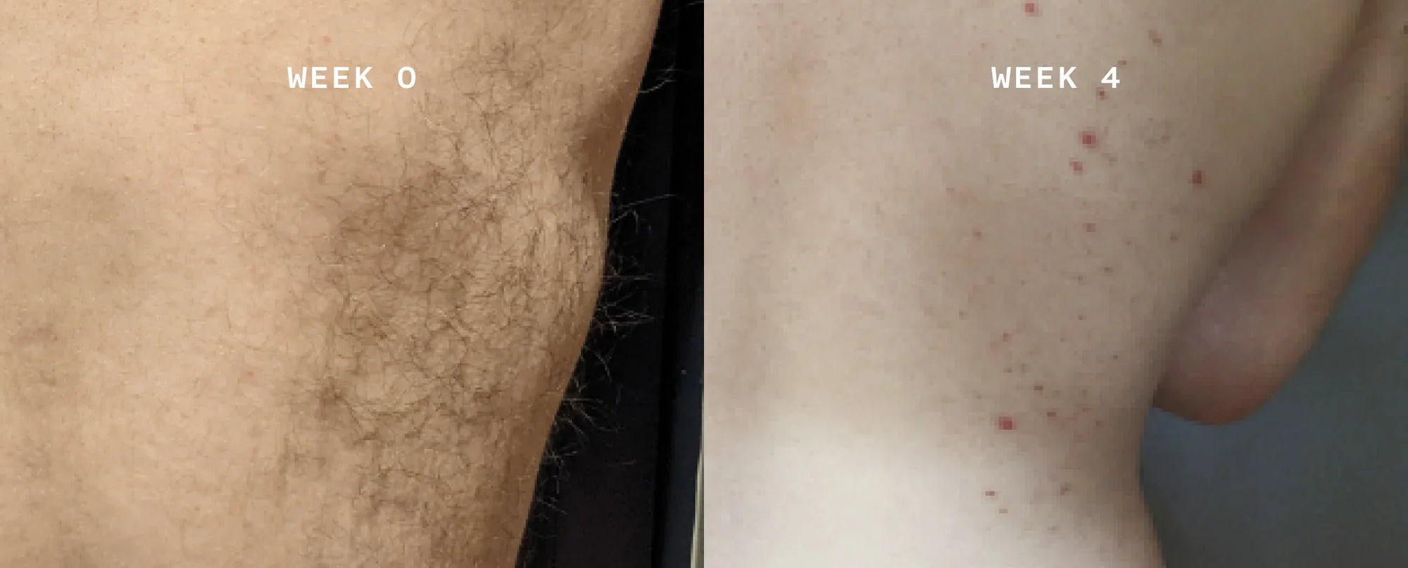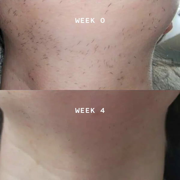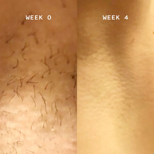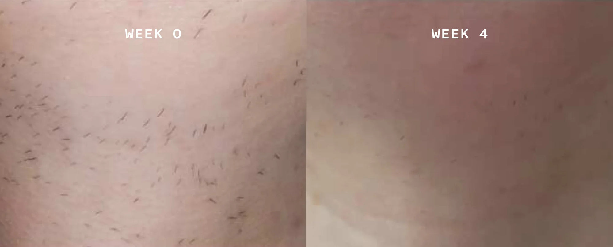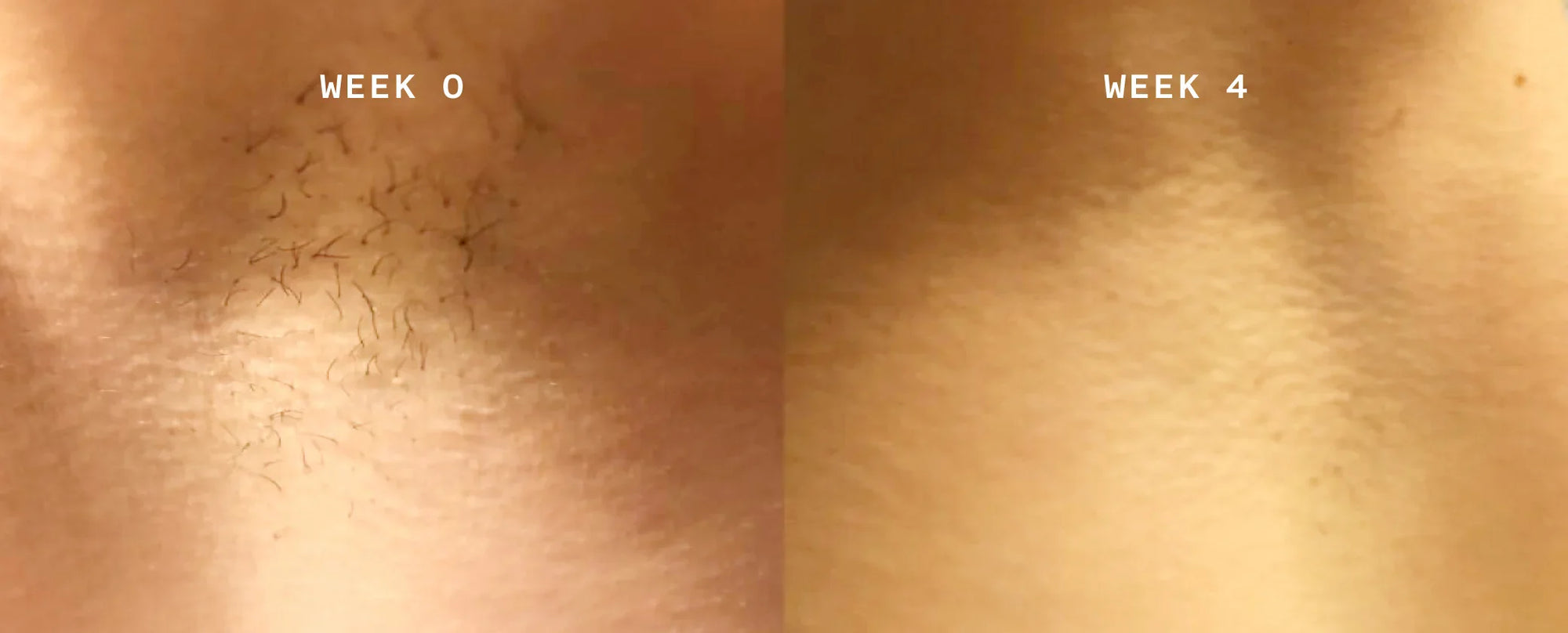 Our proprietary PrecisionPulse™ IPL technology works by selectively targeting the melanin (pigment in your hair follicles), and helping break the cycle of hair regrowth. The light damages the root of your hair and over several treatments inhibits future hair regrowth. We recommend 2 treatments per week for 8 weeks. You can expect to see visible results in just 4 weeks when paired with The Nood Serum or 8 weeks when used separately.